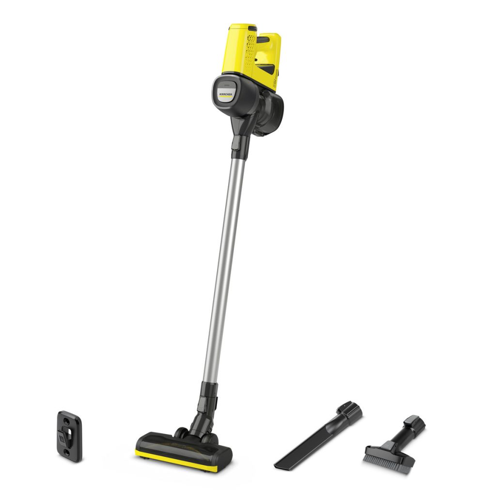 Foam filter, Air intake filter, Universal floor nozzle, Crevice nozzle, Upholstery nozzle and soft dusting brush (2-in-1), Metal suction tube, Small wall bracket, 21.6 V / 2.5 Ah Battery (1 unit).