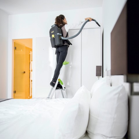 Compact, easy to handle, light and cordless – the HV 1/1 Bp Fs impresses with suction power and durability and makes possible considerably faster and more agile work than is possible with a large, corded machine. It can also be easily used for cleaning work in vehicles or for removing dirt during installation work.