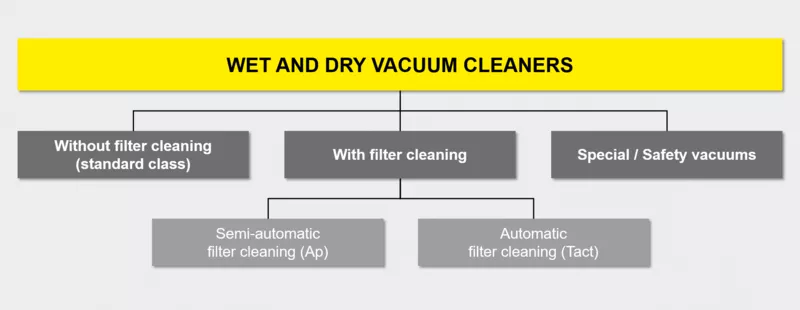 Wet and dry vacuum cleaners are machines for trade and industry, as well as the hotel and restaurant trade. They eliminate both dry and damp dirt, including liquids. Commercial wet and dry vacuum cleaners are indispensable for removing coarse and fine dust, particularly for diverse work on building sites or in workshops.